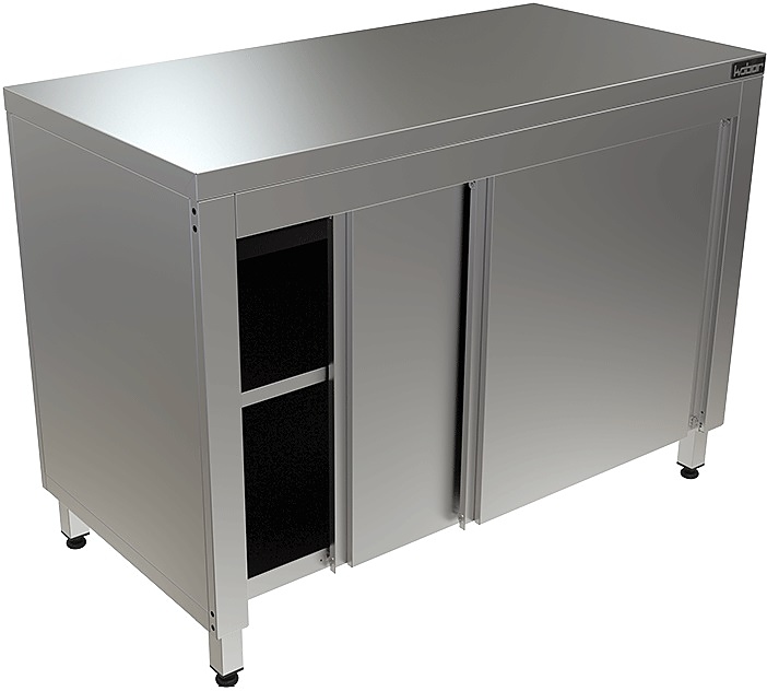 Стол производственный Кобор СТ-120/60/К используется на предприятиях общественного питания, торговли и пищевых производствах для хранения кухонной утвари и обработки различных ингредиентов перед приготовлением. Материал каркаса - высококачественная нержавеющая сталь (труба 40х40 мм), материал столешницы - высококачественная нержавеющая сталь AISI 430, усиленная листом ЛДСП (толщина 16 мм).