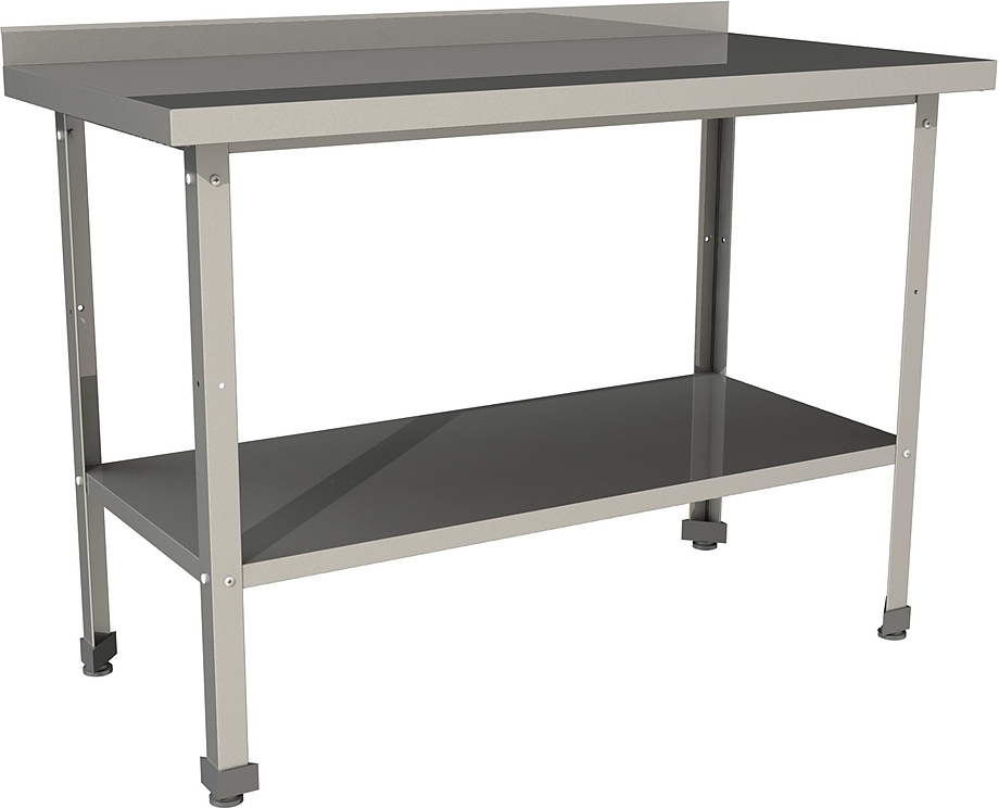 Производственный стол Restoinox СП-4/6-БП-ЭН серии 600 предназначен для обработки продуктов питания, раскатки теста, хранения кухонного инвентаря и оборудования на предприятиях общественного питания, торговли и пищевых производствах. Опоры ножек регулируются по высоте. Материал ножек - уголок из нержавеющей стали AISI 430 (40х40 мм), материал рабочей поверхности и полки - нержавеющая сталь AISI 430.