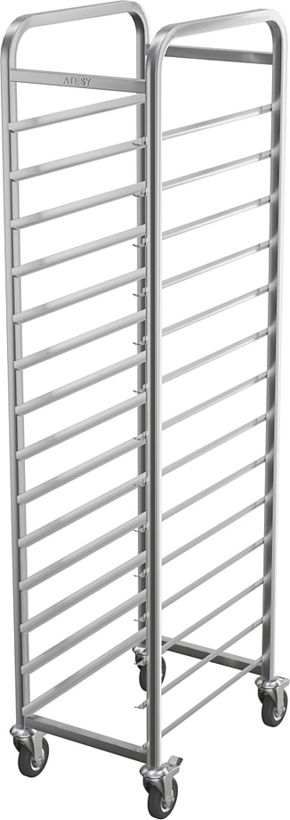 Тележка-шпилька ATESY КШ-Л-1.14-1.1-02 серии Люкс предназначается для временного хранения и перемещения гастроемкостей между линиями раздачи готовых блюд и кухней на предприятиях общественного питания, торговли и пищевых производствах. Тележка оснащена 4 поворотными колесами (2 с тормозами), кромками с безопасным подгибом. Тип конструкции - сварная, стойки из труб квадратного сечения. Материал конструкции - нержавеющая сталь AISI 304.