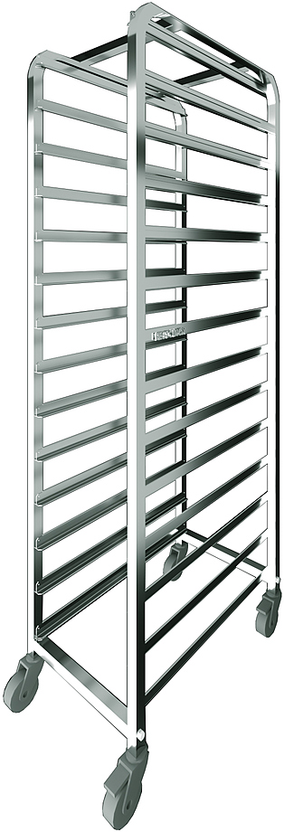 Тележка-шпилька Restoinox ТШРПУР-12/325-360 предназначается для перемещения подносов и противней на предприятиях общественного питания, торговли и пищевых производствах. Тележка установлена на колесах, 2 оснащены стопорным механизмом. Материал разборного каркаса - нержавеющая сталь AISI 430 (труба 25х25 мм), материал направляющих - нержавеющая сталь AISI 430.
