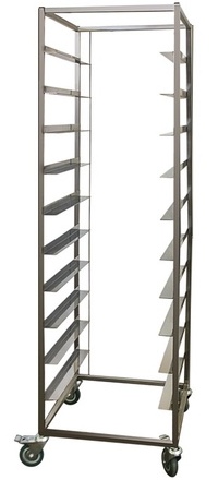 Simeco Ш10К5/5 используется на предприятиях общепита и торговли для сбора хранения посудомоечных кассет. Шпилька имеет 10 уровней для кассет 500х500 мм. Расстояние между уровнями 150мм. Выполнена полностью из нержавеющей стали. В комплекте 4 колеса диаметром 100 мм, 2 из которых с тормозом.