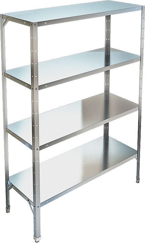 Кухонный стеллаж Техно-ТТ СТР-114/1204 используется на предприятиях общественного питания, торговли и пищевых производствах для хранения посуды, кухонного инвентаря и продуктов. В модели предусмотрены регулируемые ножки и полки. Тип каркаса - разборный, полки - сплошные. Материал каркаса - крашеный металл (уголок 40х40 мм толщиной 1.2 мм), материал полок - нержавеющая сталь AISI 304 (толщина 0.8 мм).