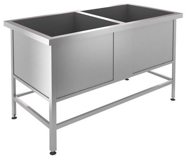 Модель оснащена ножками, регулирующимися по высоте. Каркас выполнен из оцинкованной стали, мойки - из нержавеющей стали.