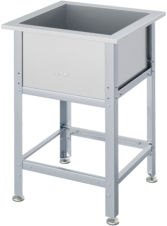 Моечная ванна ATESY ВСМ-Б-1.430-02-К серии Бюджет используется на предприятиях общественного питания и торговли для мытья столовой и кухонной посуды, инвентаря, овощей и фруктов, а также для оттайки замороженных пищевых продуктов. Каркас выполнен из крашеной углеродистой стали толщиной 1,2 мм, ванна - из нержавеющей стали AISI 430 толщиной 0,7 мм, опоры регуляторов высоты ножек - из нержавеющей стали.