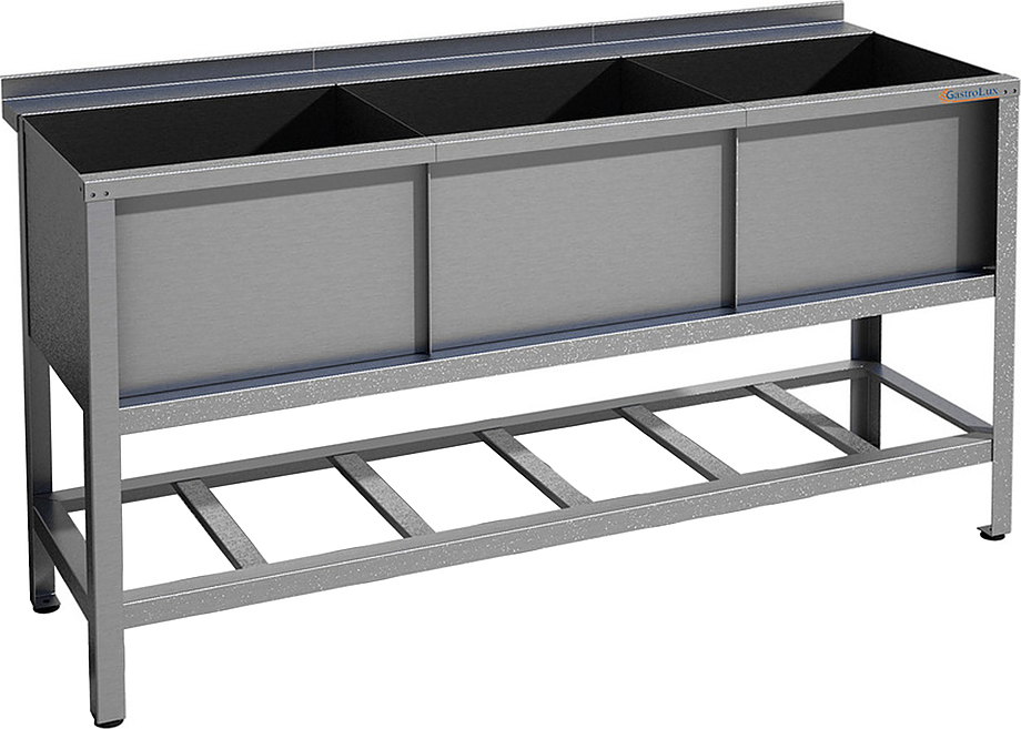 Моечная ванна Gastrolux ВМ 3-1470Н/Е серии Econom предназначена для мойки приборов, посуды, кухонных принадлежностей и продуктов на предприятиях общественного питания. Корпус выполнен из нержавеющей стали AISI 430, каркас - из нержавеющего профиля AISI 430 40х40 мм.