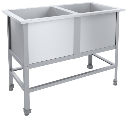 Моечная ванна используется на предприятиях общественного питания и торговли для мытья посуды, кухонных принадлежностей и продуктов. Модель оснащена отверстием для установки выпускного сифона и регулируемыми по высоте ножками. Каркас выполнен из оцинкованного уголка, емкость - из нержавеющей стали AISI 430.