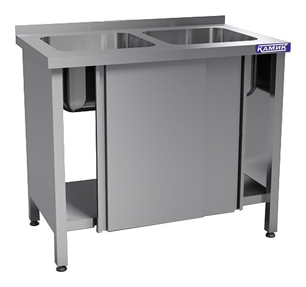 Моечная ванна КАМИК ВМ-2-471461 используется на предприятиях общественного питания и торговли для мойки посуды, овощей и фруктов. Сварной каркас и столешница выполнены из нержавеющей стали AISI 430, цельнотянутая емкость - из нержавеющей стали AISI 304.