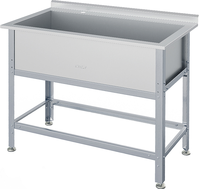 Моечная ванна ATESY ВСМ-Б-1.1250.600-1-02 серии Бюджет предназначается для мытья посуды и кухонного инвентаря, овощей и фруктов, а также для оттайки замороженных продуктов. Кромки ванны имеют безопасную фальцовку, углы зашлифованы. Ножки регулируются по высоте. Тип конструкции - разборная. Материал каркаса - профиль из оцинкованной стали (толщина 1.2 мм), материал ванны - нержавеющая сталь AISI 430 (толщина 0.7 мм), материал опоры регуляторов высоты - нержавеющая сталь, ножки выполнены из пластика.