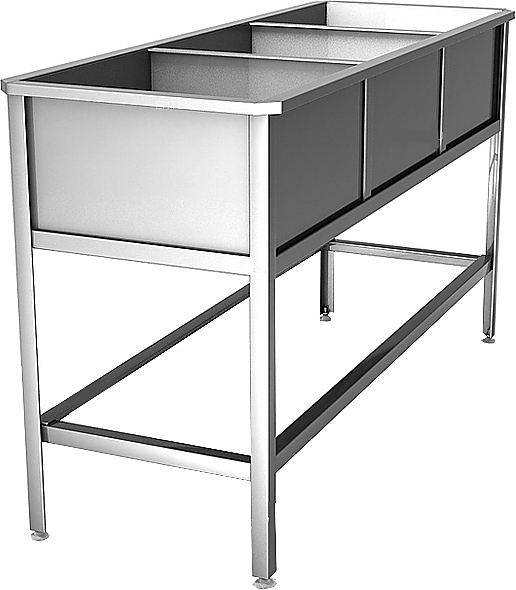 Моечная ванна GPSteel ВМ-3/430-э серии Эконом используется на предприятиях общественного питания, торговли и пищевых производствах для мытья кухонного инвентаря, посуды и гастрономических продуктов. Материал емкости – нержавеющая сталь, материал каркаса – оцинкованный уголок (разборный).