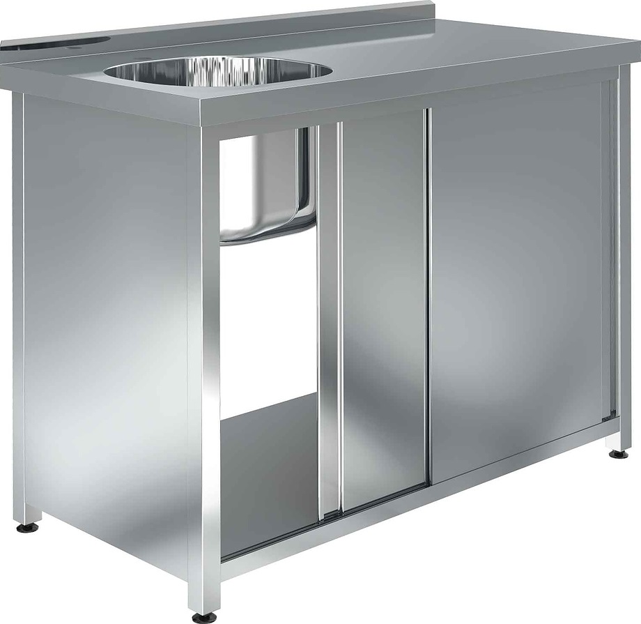 Моечная ванна Assum СПКБ-12/6-ВЛ4 серии Премиум используется на предприятиях общественного питания и торговли для мойки продуктов, посуды и прочего кухонного инвентаря. Модель оснащена 1 раковиной, бортом, дверями-купе, отверстием для смесителя и выпуском. Материал ванны - нержавеющая сталь AISI 304, материал столешницы - нержавеющая сталь AISI 430 с усилением ДСП, материал стенки, дверей и полки - нержавеющая сталь AISI 430, материал каркаса - нержавеющая сталь AISI 430 (труба 40х40 мм), материал опор ножек - пластик.