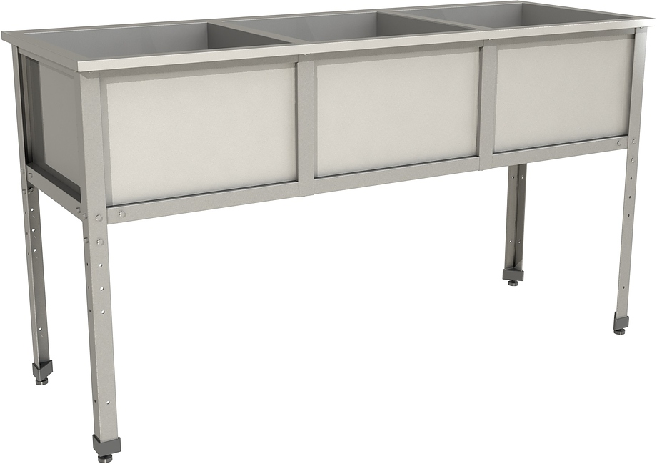 Моечная ванна Restoinox ВМС-3/4-ЭН предназначается для мытья посуды, кухонного инвентаря и продукции на предприятиях общественного питания, торговли и пищевых производствах. Материал каркаса - уголок из нержавеющей стали (40х40 мм), материал емкости - нержавеющая сталь AISI 430.