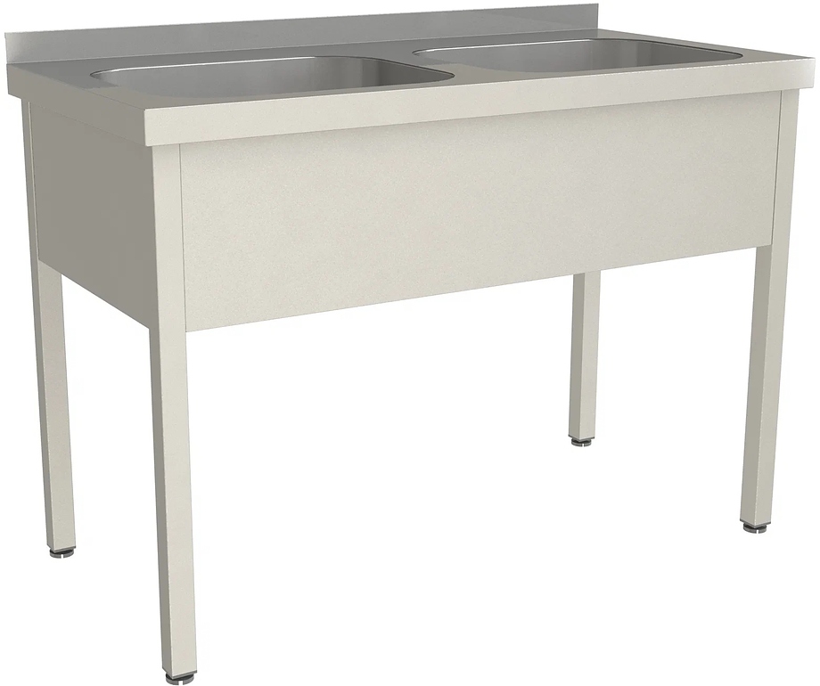 Моечная ванна Restoinox ВМЦ-2/14/7-БЛ предназначается для мытья посуды, кухонного инвентаря и продукции на предприятиях общественного питания, торговли и пищевых производствах. Материал каркаса - нержавеющая сталь AISI 430 (труба 40x40 мм), материал фартука - нержавеющая сталь, материал емкости - нержавеющая сталь AISI 304.