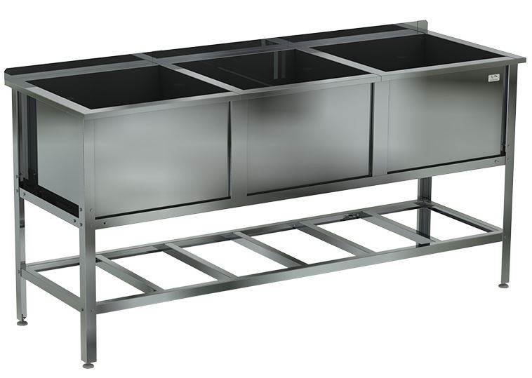 Емкость ванны Кобор ВМСБ/3-198/70 выполнена из высококачественной нержавеющей стали. Технология сварки швов ванны обеспечивает не только герметичность соединения, но и прочность конструкции. Ножки изготовлены в виде уголка 40х40 мм из оцинкованной стали и регулируются по высоте, что помогает избежать неустойчивости рабочей конструкции.