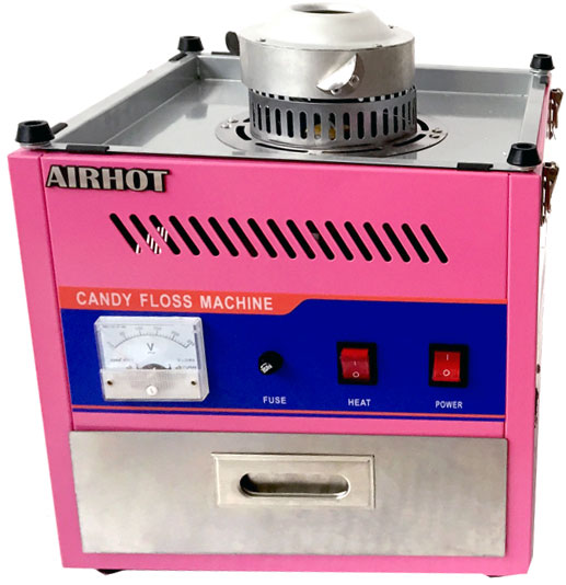 Аппарат для сахарной ваты Airhot CF-1 используется на предприятиях общественного питания и торговли. На металлический бокс конструкции ставится специальная чаша из нержавеющей стали, где тонкие нити накручиваются на палочку и становятся сладкой ватой. Модель проста и удобна в использовании. Корпус выполнен из окрашенной стали, чаша-ловитель - из нержавеющей стали.