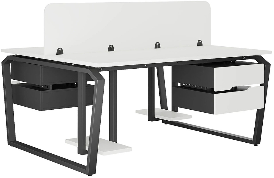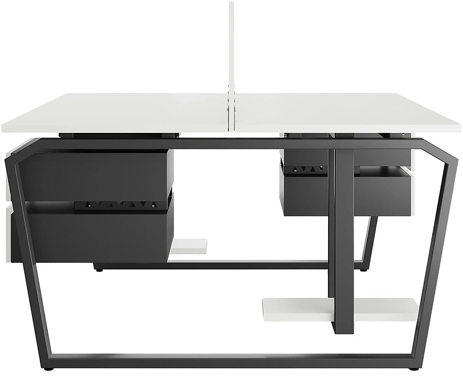 Офисный стол Кобор TB/2-140/140 black/premiuml предназначен для двух рабочих мест и идеально подходит для офисов и кабинетов руководителей. Модель оснащена опорами в виде обратной трапеции с скошенными верхними углами. Материал столешницы - прочный ЛДСП толщиной 25 мм, усиленная снизу металлическим каркасом, материал опор и каркаса - окрашенный металл.