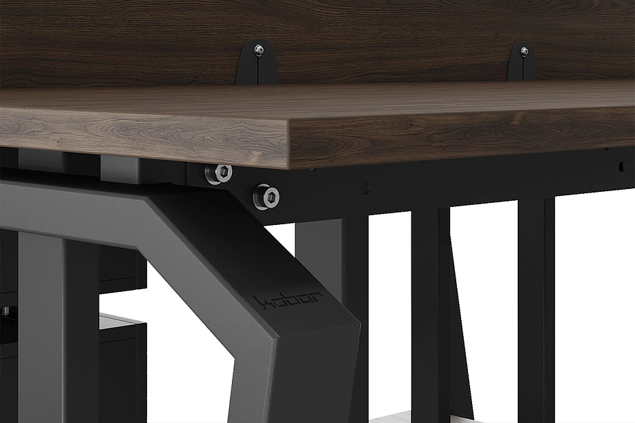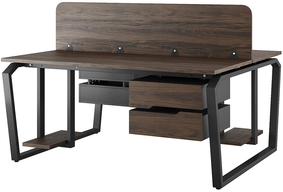 Офисный стол Кобор TB/2-80/120 black/charlston предназначен для двух рабочих мест и идеально подходит для офисов и кабинетов руководителей. Модель оснащена опорами в виде обратной трапеции с скошенными верхними углами. Материал столешницы - прочный ЛДСП толщиной 25 мм, усиленная снизу металлическим каркасом, материал опор и каркаса - окрашенный металл.