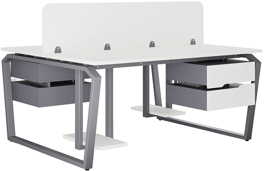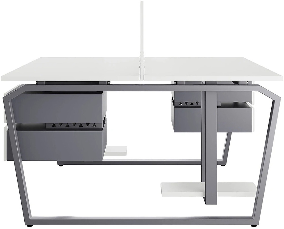 Офисный стол Кобор TB/2-140/140 graphite/premium предназначен для двух рабочих мест и идеально подходит для офисов и кабинетов руководителей. Модель оснащена опорами в виде обратной трапеции с скошенными верхними углами. Материал столешницы - прочный ЛДСП толщиной 25 мм, усиленная снизу металлическим каркасом, материал опор и каркаса - окрашенный металл.