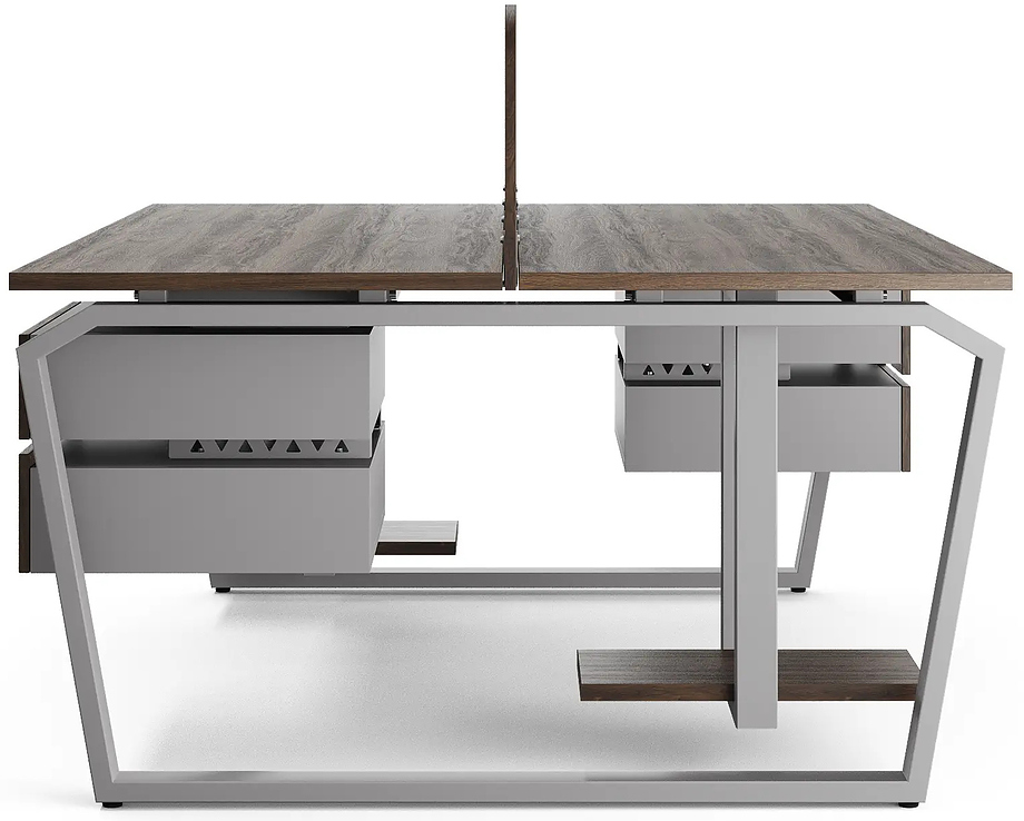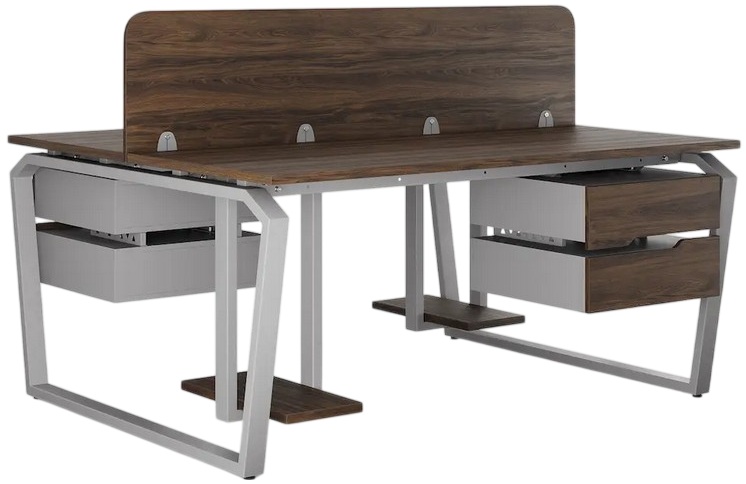 Офисный стол Кобор TB/2-80/120 aluminum/charlston предназначен для двух рабочих мест и идеально подходит для офисов и кабинетов руководителей. Модель оснащена опорами в виде обратной трапеции с скошенными верхними углами. Материал столешницы - прочный ЛДСП толщиной 25 мм, усиленная снизу металлическим каркасом, материал опор и каркаса - окрашенный металл.
