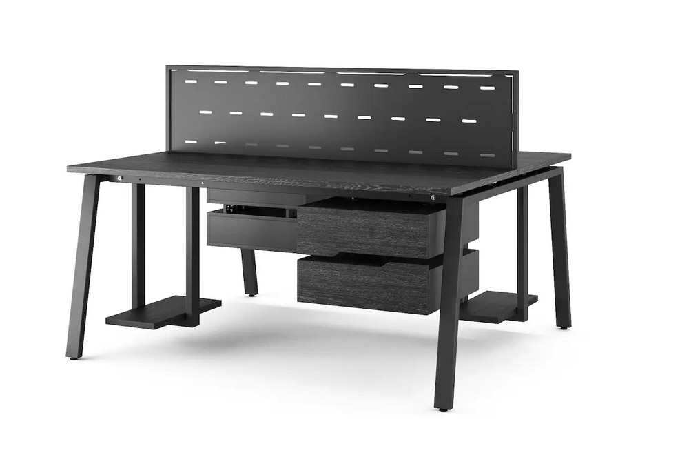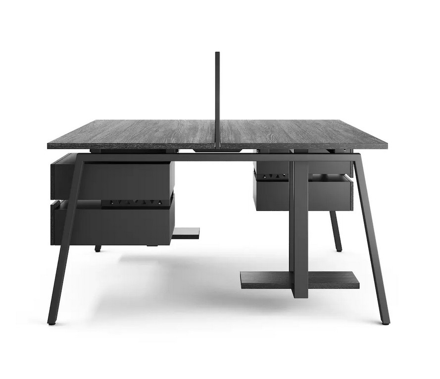 Офисный стол Кобор TA/2-80/120 black/wood предназначен для двух рабочих мест и идеально подходит для офисов и кабинетов руководителей. Модель оснащена А-образными опорами. Материал столешницы - прочный ЛДСП толщиной 25 мм, усиленная снизу металлическим каркасом, материал опор и каркаса - окрашенный металл.