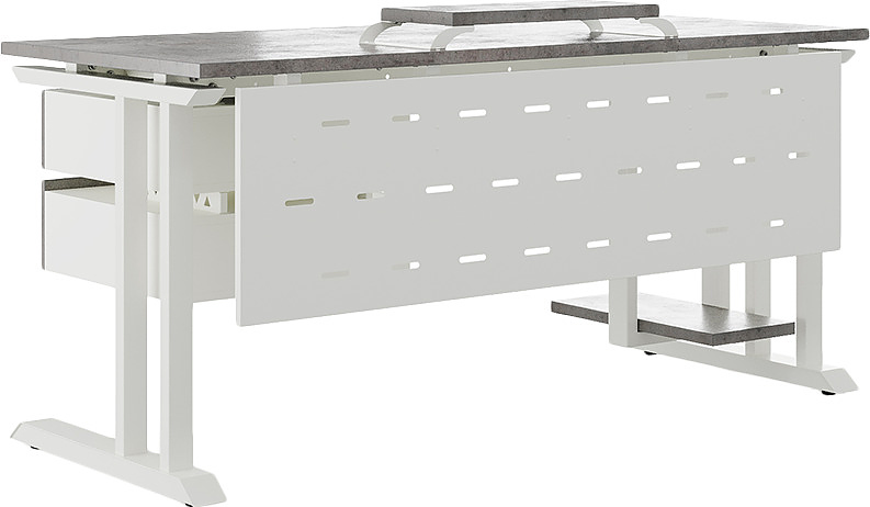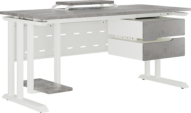 Офисный стол КОБОР L1-140/70 white/chicago используется в офисных помещениях и кабинетах руководителей. Модель оснащена L-образными опорами. Материал столешницы - прочный ЛДСП толщиной 25 мм, усиленная снизу металлическим каркасом, материал опор - окрашенный металл.