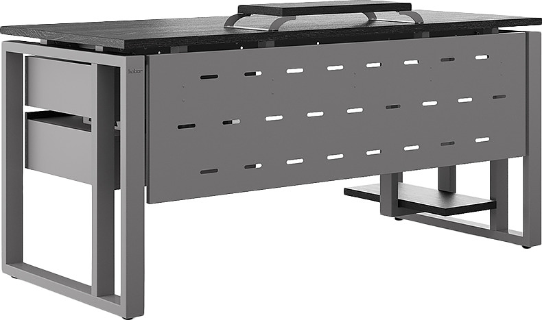 Офисный стол КОБОР O2-120/60 aluminum/wood используется в офисных помещениях и кабинетах руководителей. Модель оснащена О-образными опорами и усиленной вертикальной балкой. Материал столешницы - прочный ЛДСП толщиной 25 мм, усиленная снизу металлическим каркасом, материал опор - окрашенный металл.