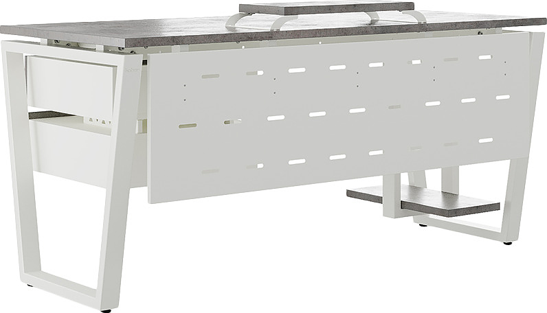 Офисный стол КОБОР OTR-120/60 white/chicago используется в офисных помещениях и кабинетах руководителей. Модель оснащена опорами в форме обратной трапеции. Материал столешницы - прочный ЛДСП толщиной 25 мм, усиленная снизу металлическим каркасом, материал опор - окрашенный металл.