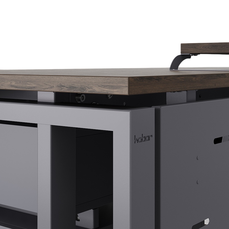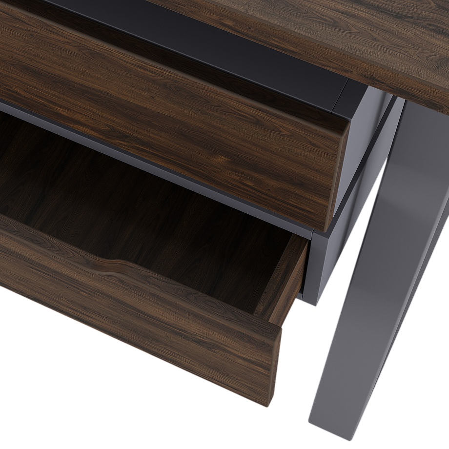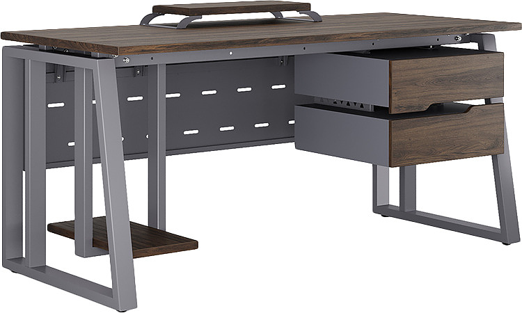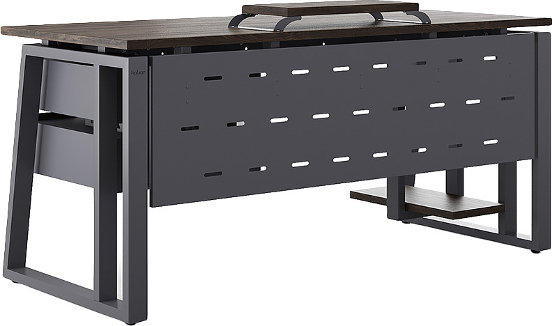 Офисный стол КОБОР TS2-120/60 graphite/charlston используется в офисных помещениях и кабинетах руководителей. Модель оснащена опорами в форме наклонной трапеции с усиленными вертикальными балками. Материал столешницы - прочный ЛДСП толщиной 25 мм, усиленная снизу металлическим каркасом, материал опор - окрашенный металл.