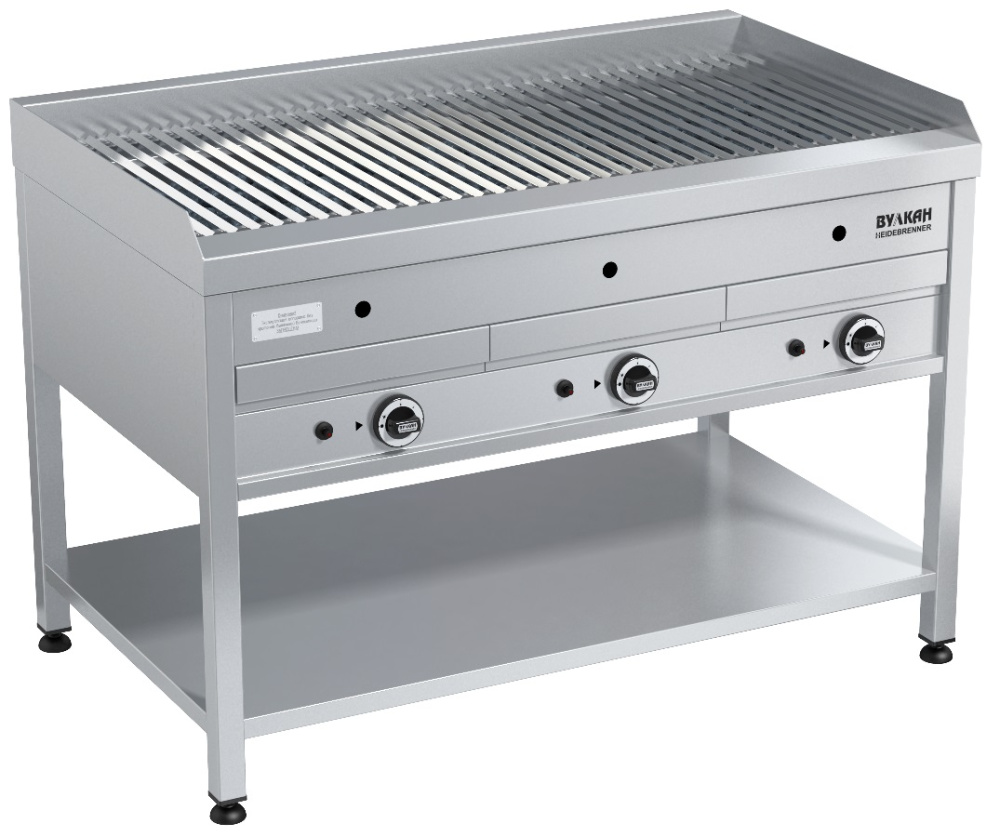 Лавовый гриль Вулкан BPD 03L «Толбачик» предназначен для жарки различных продуктов на предприятиях общественного питания и торговли. В процессе приготовления блюда получают такой же вкус, аромат и внешний вид, словно их готовили на открытом огне. Вулканическая лава равномерно распределяет жар по продукту; лавовый камень впитывает лишнюю жидкость и исключает появление неприятных запахов в процессе готовки. Модель оснащена газ-контролем, пьезоподжигом, запальной горелкой и защитным бортом от разбрызгивания. Специальная V-образная решетка задерживает излишки жира, выделяющиеся при жарке.