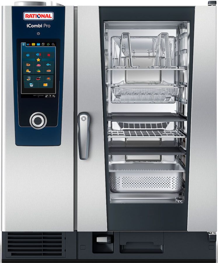 Пароконвектомат Rational iCombi Pro 10-1/1 предназначен для приготовления блюд путём жарки, тушения или варения на предприятиях общественного питания и торговли. Такое оборудование может заменить плиту, жарочный и духовой шкаф, конвекционную печь, опрокидывающуюся сковороду, пищеварочный котел и др. Модель оснащена цветным 8,5 дюймовым TFT-монитором, сенсорным экраном с самообъясняющими символами.
