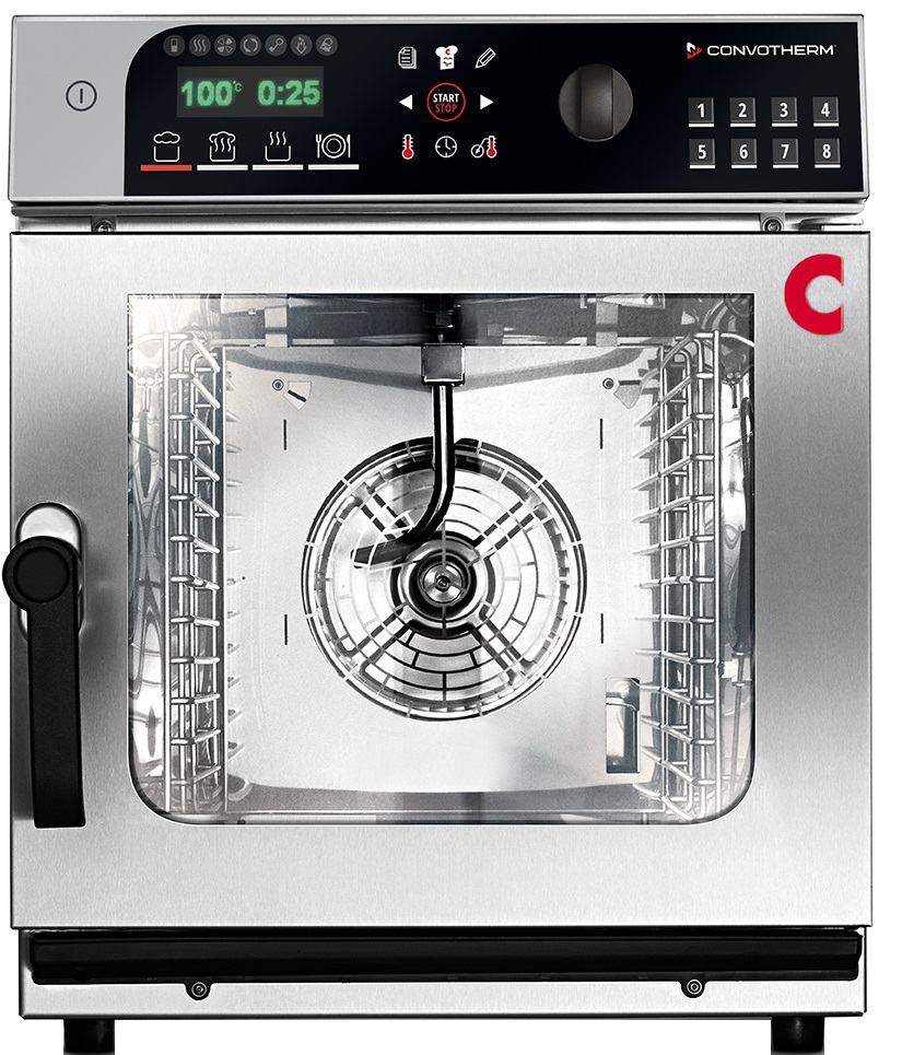 Пароконвектомат Convotherm Mini easyTouch 6.10 предназначен для обжаривания, приготовления на пару, бланширования, запекания и других видов тепловой обработки продуктов на предприятиях общественного питания. Цифровой дисплей, возможность автономной работы без подключения к водопроводу и канализации, вентилятор с уменьшенной скоростью вращения и автореверсом.