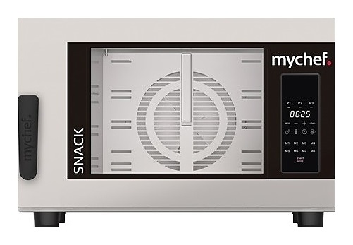 Пароконвектомат Distform Mychef Snack 4 GN 1/1 (KCE4100D) используется на предприятиях общественного питания, торговли и пищевых производствах для приготовления различных блюд широкого спектра, а также выпечки хлебобулочных и кондитерских изделий. 2 режима работы - "конвекция" и "конвекция + пароувлажнение" (температура от 30 до 260 °C). Управление при помощи электронной панели с LED-дисплеем: 8 программ быстрого выбора, 3 фазы приготовления с индивидуальными параметрами для каждой.