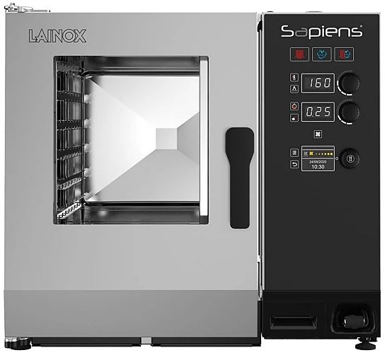 Пароконвектомат Lainox SAPIENS BOOSTED SAE061B+NPSB предназначен для приготовления различных блюд, хлебобулочных и кондитерских изделий на предприятиях общественного питания, торговли и пищевых производствах. Модель оснащена управлением Digital, автоматической мойкой, ручным душем, реверсом, термощупом, держателями лотков, таймером, вентилятором с 6 скоростями, внутренней подсветкой и дверью с правым открыванием. Материал корпуса - высококачественная нержавеющая сталь AISI 304, материал камеры - высококачественная нержавеющая сталь AISI 304 18/10 (толщина 1 мм).