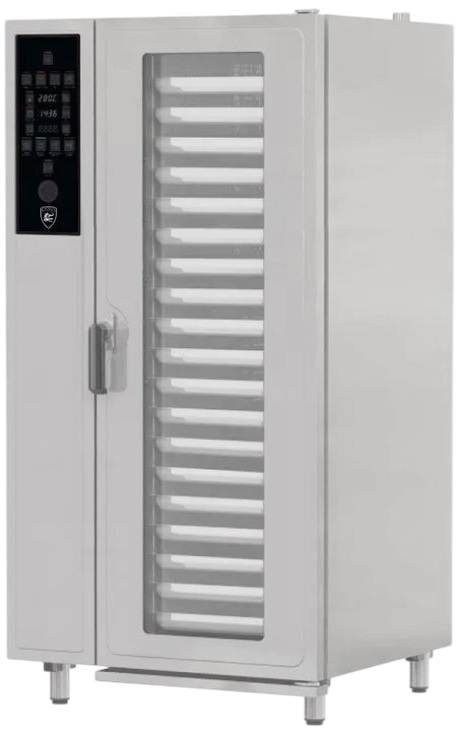 Пароконвектомат KAYMAN СУ-ШЕФ БАЗА ПКЭ-20Б-БА предназначен для приготовления различных блюд на предприятиях общественного питания, торговли и пищевых производствах. Модель оснащена Touch Screen управлением, автоматической мойкой и подсветкой. Материал изделия - высококачественная нержавеющая сталь, материал дверцы - тройное закаленное стекло.