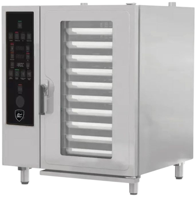 Пароконвектомат KAYMAN СУ-ШЕФ ПЛЮС ПКЭ-10Б-ПЛ предназначен для приготовления различных блюд на предприятиях общественного питания, торговли и пищевых производствах. Модель оснащена Touch Screen управлением, таймером, автоматической мойкой, регулировкой влажности, душирующим устройством и подсветкой. Материал изделия - высококачественная нержавеющая сталь, дверцы - тройное закаленное стекло.
