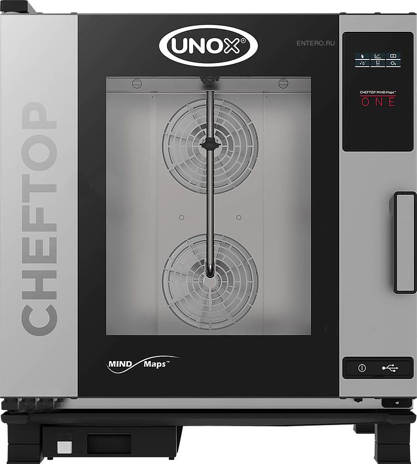 Пароконвектомат UNOX XEVC-0711-E1R серии ChefTop MIND.Maps предназначен для приготовления различных блюд, выпечки хлебобулочных и кондитерских изделий на предприятиях общественного питания и торговли, в пекарнях и кондитерских. Модель оснащена подсветкой посредством внешней LED-лампы и C-образными с зубчатыми нишами направляющими. Внутреннее открывающееся стекло облегчают чистку и обеспечивают максимальную гигиену. Камера с закругленными углами выполнена из нержавеющей стали AISI 304, направляющие - из профилированной стали, дверной замок - из высокопрочного самосмазывающегося технополимера, внутренний штифт дверной ручки - из углеродного волокна.