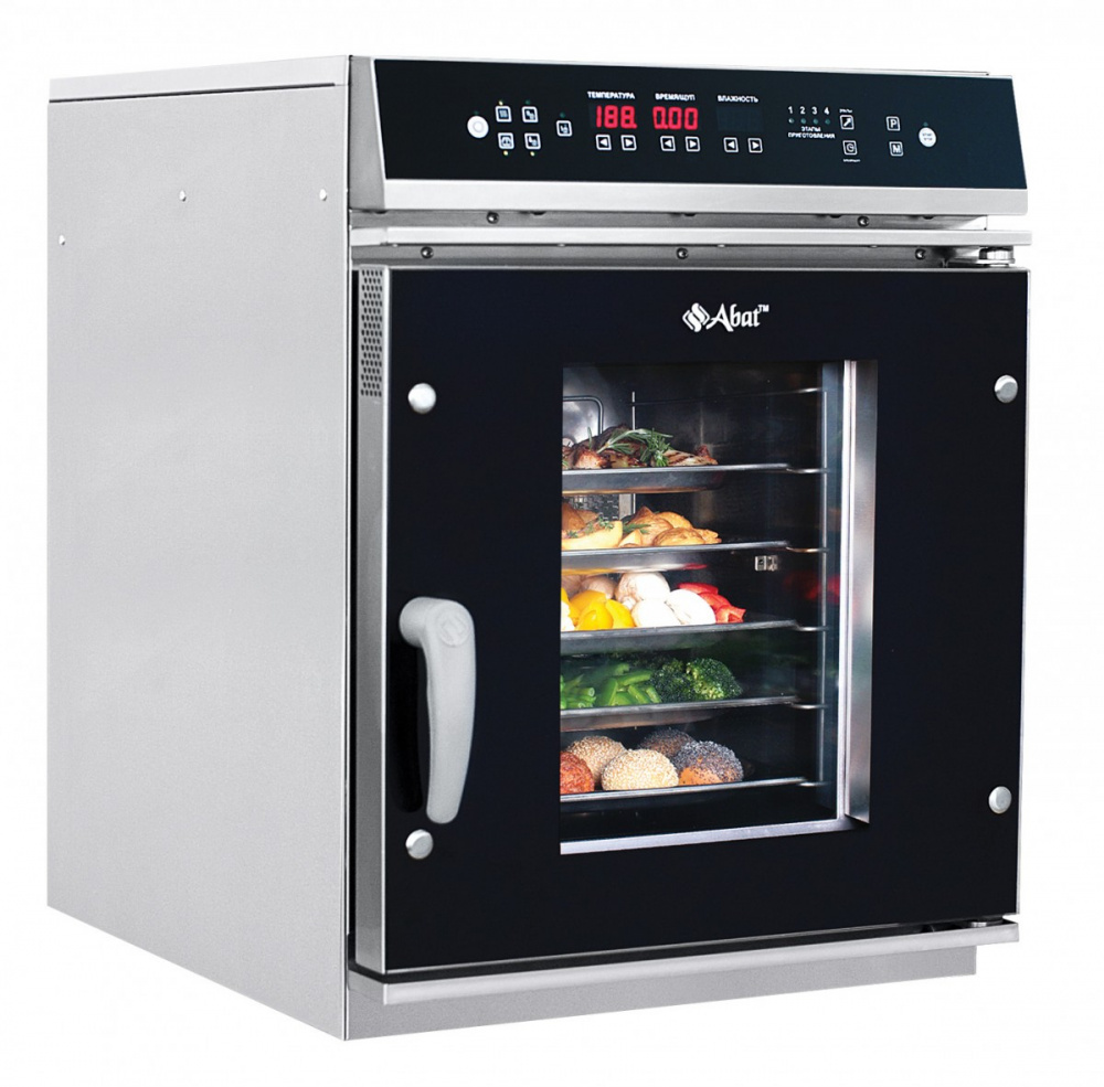 Пароконвектомат Abat ПКА 6-1/2П предназначен для обжаривания, приготовления на пару, бланширования, запекания и других видов тепловой обработки продуктов на предприятиях общественного питания и торговли. Оборудование заменяет сразу несколько видов приборов: плиту, конвекционную печь, жарочный шкаф, духовку, опрокидывающуюся сковороду, пищеварочный котел, фритюрницу и др. Приготовленные в пароконвектомате блюда сохраняют все полезные вещества. Модель оснащена подсветкой, легкосъемным жировым фильтром и дверью с двойным остеклением.