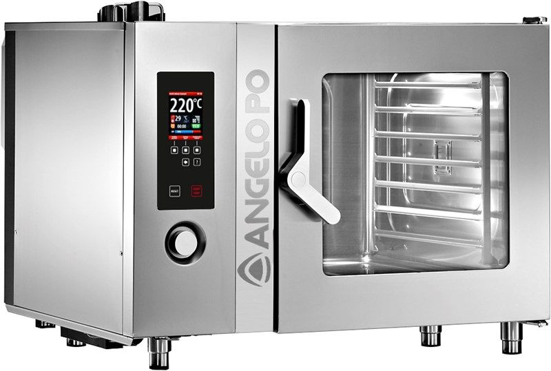 Пароконвектомат Angelo Po FX82E3T предназначен для приготовления различных блюд методом обработки паром и горячим воздухом на предприятиях общественного питания и торговли. Такое оборудование может заменить плиту, жарочный и духовой шкаф, конвекционную печь, опрокидывающуюся сковороду, пищеварочный котел и др. Благодаря специальным технологиям запах приготовляемой пищи не распространяется в помещениях.