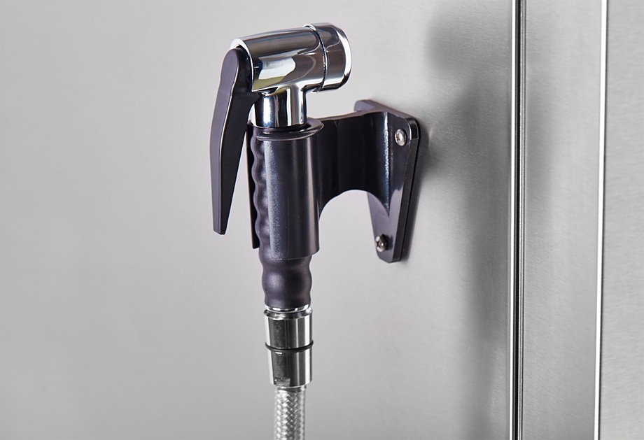 - Двухходовой механизм открывания двери для защиты персонала от горячего пара