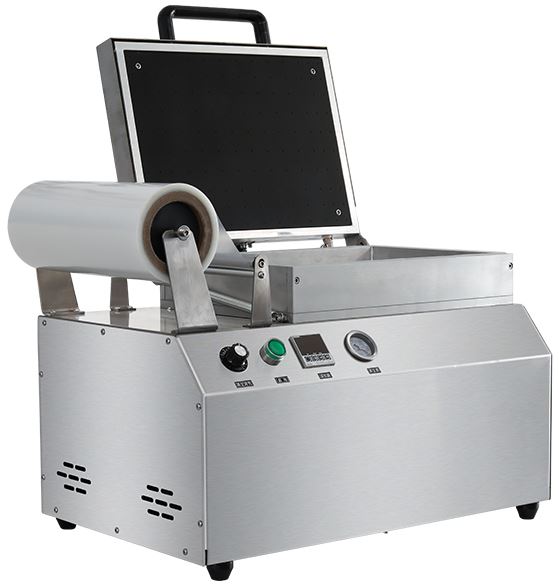 Скин-упаковочная машина Hualian HLV-300VST используется на предприятиях общественного питания, торговли и пищевых производствах для вакуумной упаковки в скин-пленку различных пищевых продуктов. Модель оснащена электромеханическим управлением, температурным контроллером, вакуумной камерой, держателем рулона с пленкой и откидной крышкой. Материал корпуса и камеры - высококачественная нержавеющая сталь.